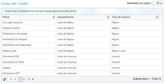 Para cada link abaixo cadastrado, foi informado que o agrupamento seria Links.