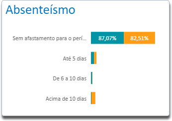 O gráfico Turnover x Absenteísmo mostra a porcentagem de colaboradores desligados em relação aos colaboradores ativos no quesito Absenteísmo, sendo as faixas de tempo apresentadas de acordo com os intervalos definidos nas Configurações do módulo Integrador.