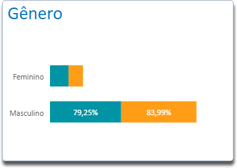 O gráfico Turnover x Gênero mostra a porcentagem de colaboradores desligados em relação aos colaboradores ativos no quesito Gênero, sendo as faixas de gênero buscadas no campo Sexo da seção Dados Pessoais presente na funcionalidade Ficha do colaborador do módulo Gen.te Recebe - Folha de Pagamento.