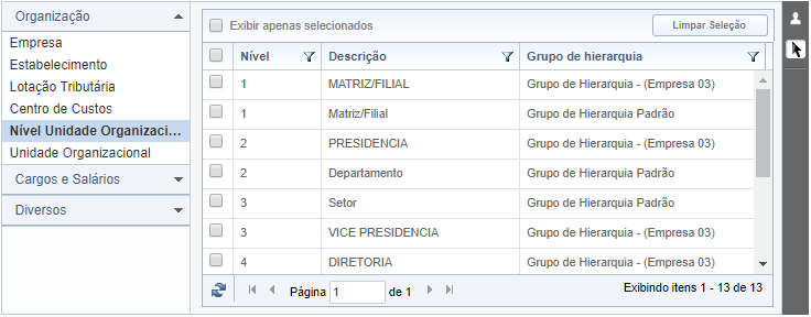 Nível de Unidade Organizacional