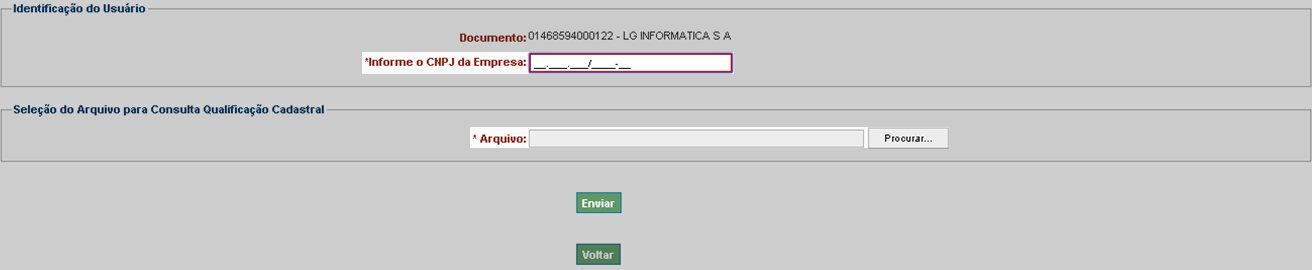 Na página exibida, informe CNPJ da Empresa, e clique sobre o botão