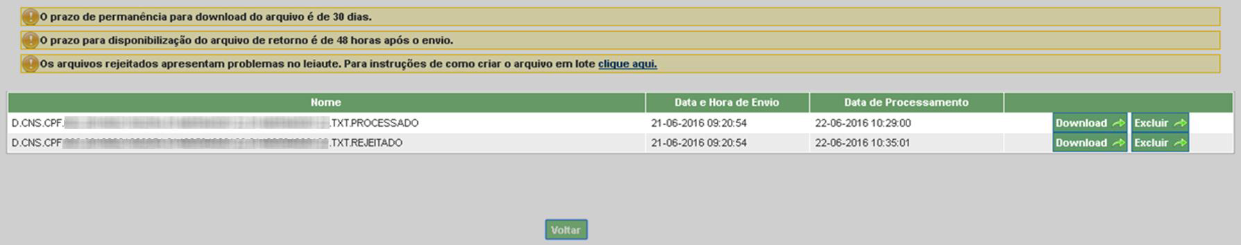 Após o envio do arquivo, a resposta da consulta pode levar até 48 (quarenta e oito) horas. Após esse