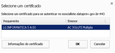 Na janela exibida, selecione um certificado digital para autenticação no servidor do eSocial.
