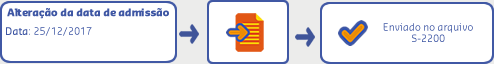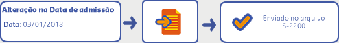 Neste exemplo, a data de admissão é inferior a data de processamento do arquivo S-2200 – Cadastro Inicial do Vínculo e Admissão/Ingresso de Trabalhador. Em virtude disso, as alterações realizadas para o colaborador serão consideradas no processamento dos arquivos S-2205 - Alteração de Dados Cadastrais do Trabalhador ou S-2206 - Alteração de Contrato de Trabalho.