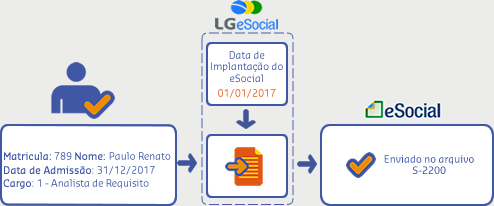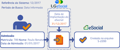 Em Configurações do Módulo a Data de Implantação do eSocial foi definida como 31/12/2017 e a Data de Admissão de um determinado colaborador é 01/01/2017.