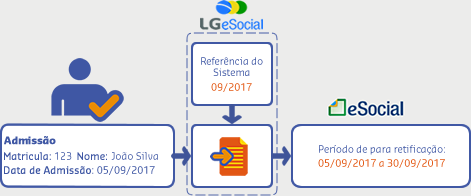 No dia 05/09/2017 o colaborador João Silva foi admitido e nessa data foi realizado o processado do arquivo S-2200 – Cadastro Inicial do Vínculo e Admissão/Ingresso de Trabalhador. Nesta situação o sistema estava na referência 09/2017.