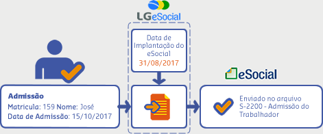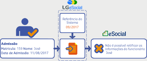 No dia 11/08/2017 o colaborador José foi admitido e cadastrado na Ficha do Colaborador, somente em 18/09/2017, caracterizando assim, uma admissão retroativa. Nesta situação o arquivo S-2200 – Cadastro Inicial do Vínculo e Admissão/Ingresso de Trabalhador foi processado na referência 09/2017.