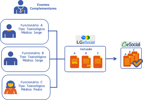 No mês subsequente, gerou o processamento dos arquivos S-2221 – Exame Toxicológico do Motorista Profissional. Os registros foram considerados como Inclusão e Aceitos pelo eSocial.
