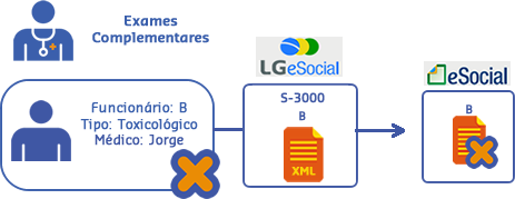 O operador excluiu o registro de Atendimento Ocupacional da colaborador B, e gerou o arquivo S-3000 - Exclusão de Eventos para informar ao eSocial sobre a exclusão da ocorrência.