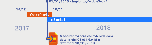Foi realizada uma ocorrência de convocação com Data de início igual a 10/12/2017 e Data de término igual a 10/01/2018. A Data da implantação do eSocial é 01/01/2018, então, ao gerar o arquivo a convocação terá como data início 01/01/2018 e como Data fim de prestação de serviços 10/01/2018.