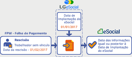 A rescisão de um trabalhador sem vínculo foi realizada em 01/02/2017, sendo que a data de implantação do eSocial informada é 01/01/2017. Neste caso o arquivo será processado pois as informações contidas no registro são posteriores à data de implantação do eSocial: