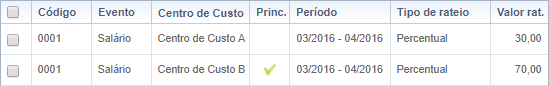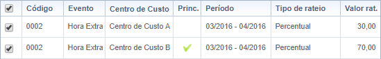 Ao realizar a consulta dos eventos rateados de um colaborador, é possível definir
