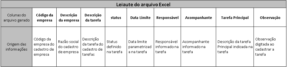 • Em relação a Conclusão, caso a tarefa esteja com percentual de conclusão igual a 100% e data limite igual ou anterior ao da referência atual da empresa que está recebendo a tarefa, esse percentual será carregado com valor “zero”. Se a tarefa estiver com o percentual de conclusão menor que 100% e data limite da tarefa for posterior a referência atual da empresa que estiver recebendo a tarefa, esse percentual será mantido.