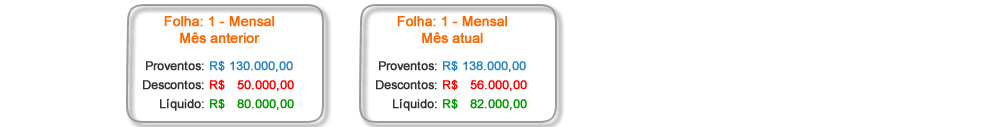 • Se no mês anterior não existir valor para a folha que está sendo apresentada no painel de conferência, e ela for do tipo mensal, o percentual de variação disponibilizado será de 100% de acréscimo (