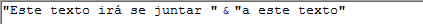 O operador de concatenação & faz com que o texto representado pelo operando à esquerda do operador seja concatenada (juntado) ao texto representada pelo operando da direita. Ambos operandos devem ser do tipo texto.