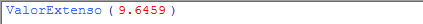 A função ValorExtenso transforma o valor numérico inserido em um valor numérico por extenso. Valores numéricos do tipo real serão truncados para inteiro antes de serem utilizados para obtenção do valor por extenso.