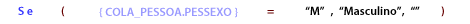 Na fórmula acima é utilizado o campo do banco de dados COLA_PESSOA.PESSEXO que é referente ao sexo do colaborador, quando o sexo for igual a masculino será retornado o valor verdadeiro da expressão Se que é Masculino, caso contrario será retornado a constante vazia.