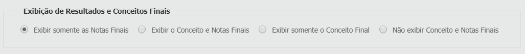 Através do campo Exibição de Resultados e Conceitos, é definido quais serão as formas de visualização para as definições caracterizadas nas Configurações dos Conceitos.