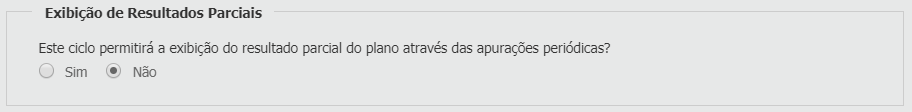Indique na opção Exibição de Resultados Parciais se deseja ou não que os resultados parciais sejam apresentados durante a apuração periódica do Ciclo.