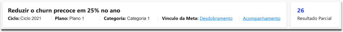 São apresentados nesse box os Planos de Ação relativos ao Ciclo da meta selecionada. Esses planos serão exibidos juntamente com seus status, que podem ser Em Andamento ou Concluído.