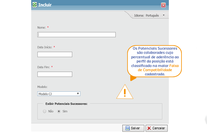 Na inclusão do ciclo poderá ser configurada a exibição ou não dos Potenciais Sucessores na Visão Detalhada.