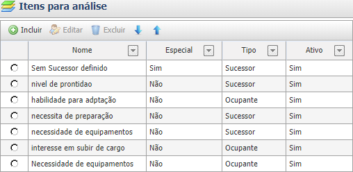 Quanto maior for o número de Itens para Análise cadastrados, maior será o número de combinações que podem ser feitas para avaliar a criticidade do ocupante e/ou sucessor.