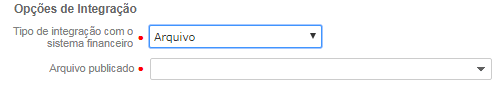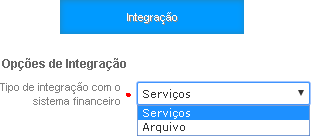 É possível selecionar de duas maneiras a forma com que se deseja realizar a integração com o Sistema Financeiro, por Serviços ou por Arquivo.