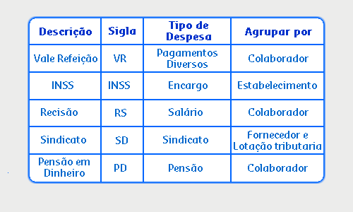 Através desta funcionalidade é possível informar Tipos de despesa, Contas financeiras, o Agrupamento desejado entre outros dados que serão enviados ao Sistema Financeiro.