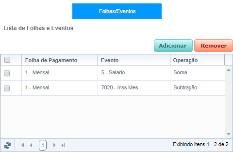 Caso uma Folha e Evento já tenha sido adicionado a lista, não será possível adiciona-los novamente para o mesmo Tipo de Pagamento.