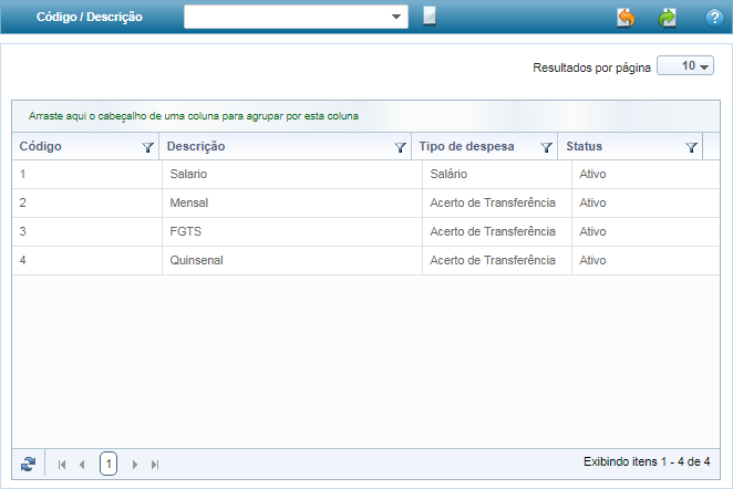 Na lista de Tipos de Pagamentos é possível realizar algumas operações, como: importação, exportação, ordenações, filtros e agrupamentos. Para saber mais clique aqui.