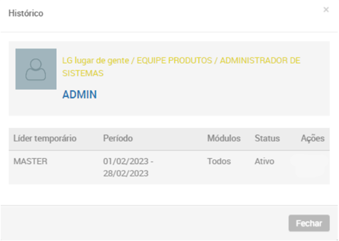 Quando é determinado um Líder temporário para um determinado colaborador durante um Período, o líder atual fica impedido de realizar as ações que o líder temporário está incumbido de efetuar.