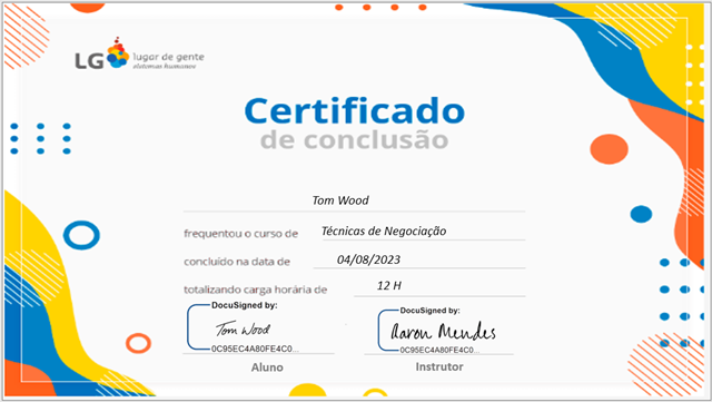 É possível que certificados personalizados de Cursos Online e Presencial sejam assinados digitalmente.