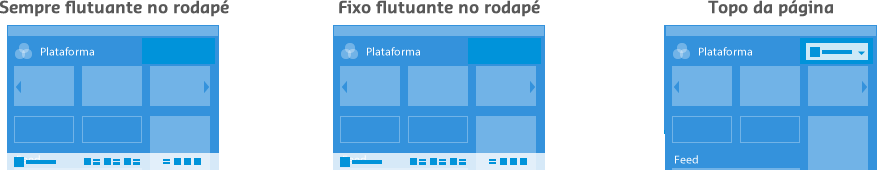 O painel do usuário pode ser disposto de três maneiras diferentes: Sempre flutuante no rodapé, Fixo flutuante no rodapé e Topo da página. Nas duas primeiras maneiras, o painel tem a mesma aparência, sendo que o primeiro acompanha a rolagem da página, enquanto o segundo continua fixo. A terceira maneira mostra o painel fixo no topo da página.