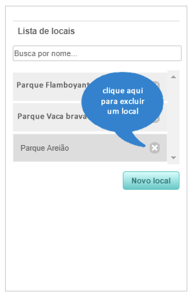 Depois de incluir os locais, estes serão apresentados na Lista de locais ao lado.