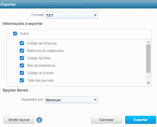 Além disso, terá a opção de emitir o layout de importação, que deverá ser emitido em uma planilha no formato da importação de fato, gerando assim, uma segunda aba para as regras da importação, como tamanho e regras dos campos.