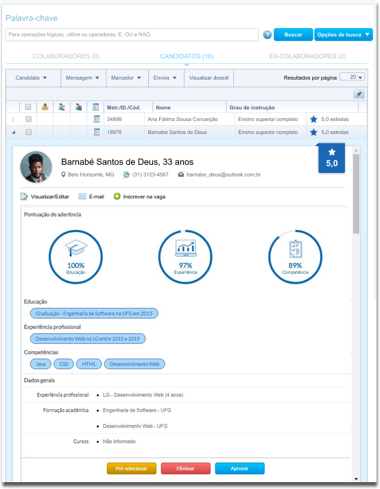 Visualize todas as informações cadastradas que estão relacionadas ao candidato que foram preenchidas previamente no Cadastro do Candidato. |