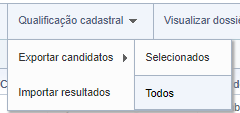 Caso deseje realizar a qualificação apenas de candidatos selecionados, clique em Exportar/Selecionados, caso deseje a qualificação de todos os candidatos, clique em Exportar/Todos.