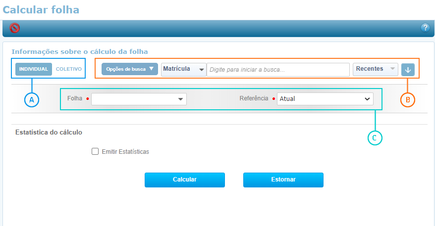 ser calculado. Selecione primeiramente a Folha e em seguida a Situação para que o