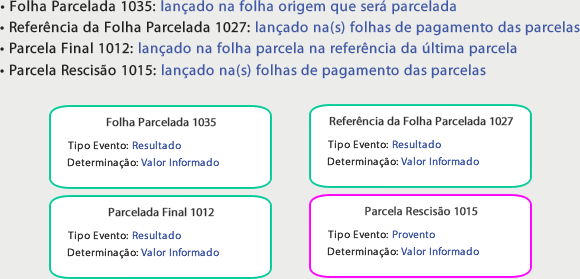 Determinação. Para os eventos que auxiliam no parcelamento de uma folha é necessário que o