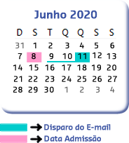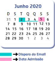 Na data de admissão - o e-mail será enviado considerando a Data de Admissão preenchida na funcionalidade Contratação.