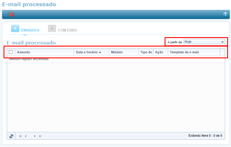 Para validar se um E-mail cadastrado foi enviado conforme a configuração estabelecida, acesse a funcionalidade E-mail processado, e olhe também nosso passo a passo no item 4. E-mail Processado