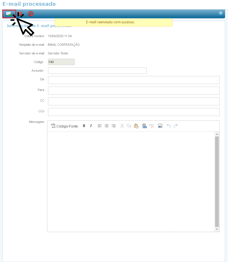 dados do e-mail selecionado, para reenviá-lo clique no ícone