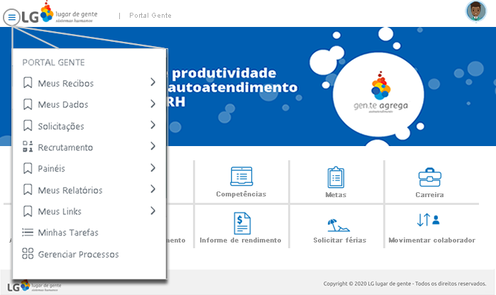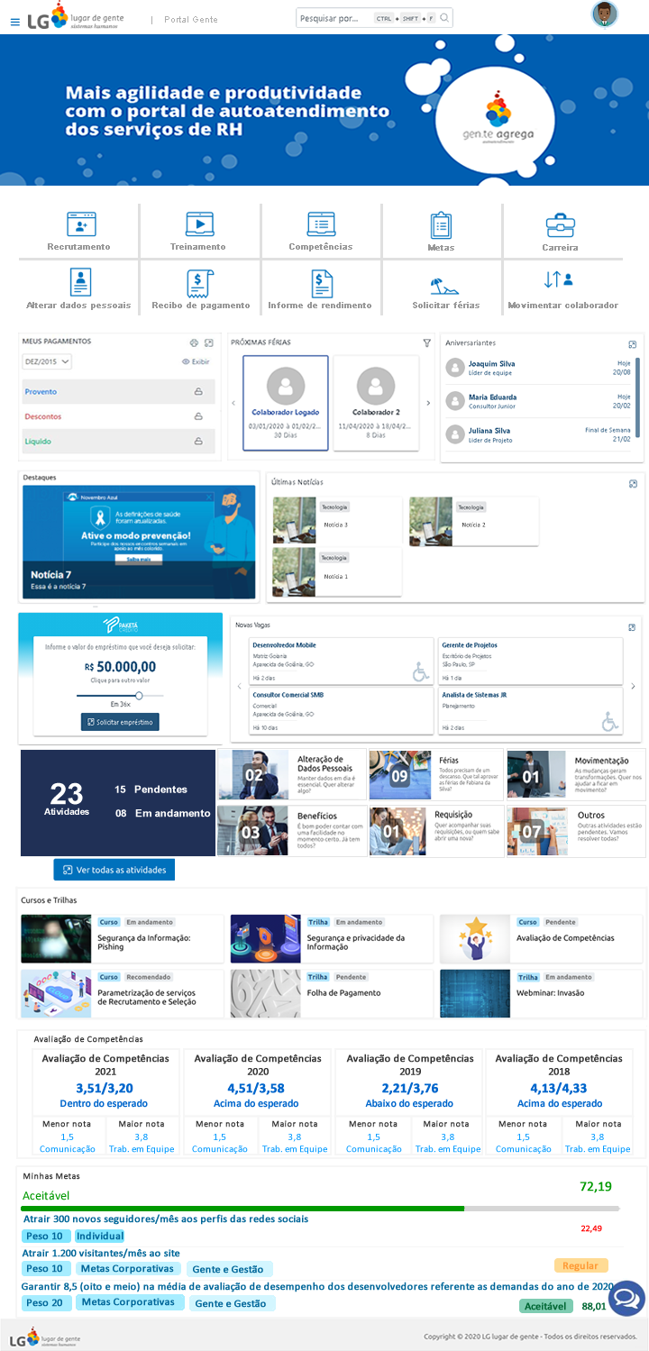 As informações referente aos widgets Avaliação de Competências da Minha Equipe e Metas da Minha Equipe serão apresentadas no Portal do Autoatendimento apenas para o perfil de gestores.