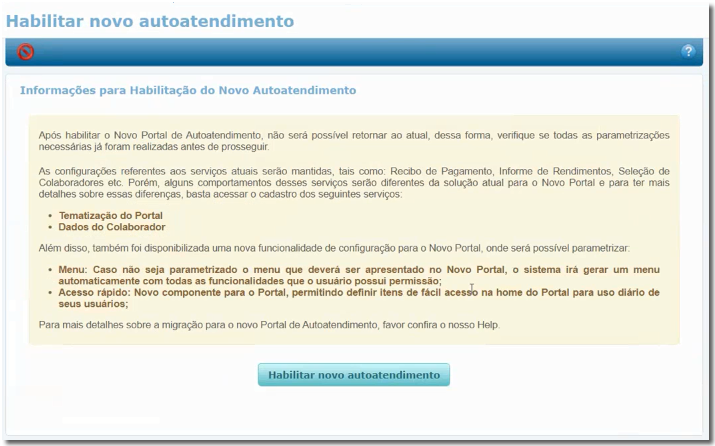 Habilitar Novo Autoatendimento