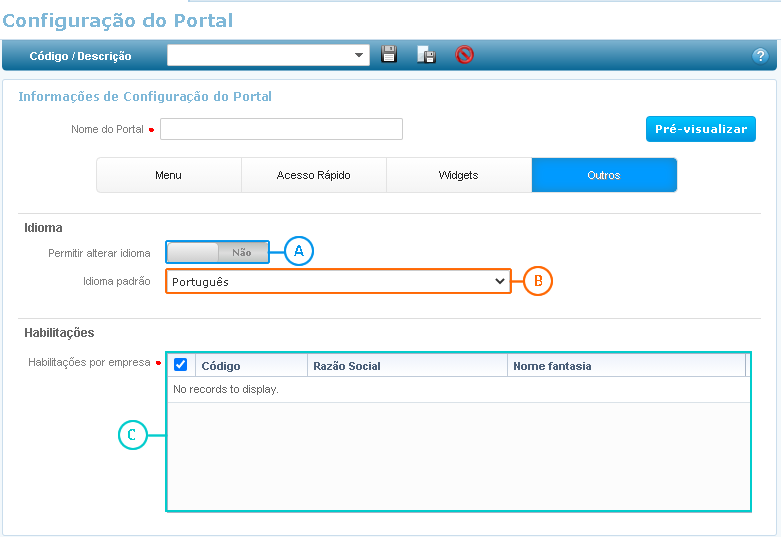 Na seção Habilitações representada por , defina para qual empresa essa configuração será habilitada, basta selecioná-la no campo Habilitações por empresa.