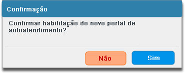 Caso escolha a opção Sim o Novo Portal de Autoatendimento será habilitado, se a opção for Não o Portal de Autoatendimento atual permanecerá ativo para utilização.