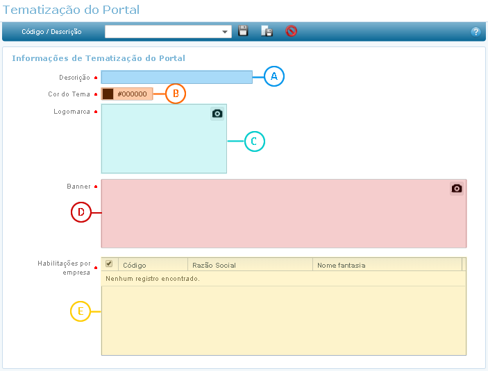 Através desta funcionalidade é possível parametrizar um tema, logomarca e banner da empresa que serão apresentados no Novo Portal do Autoatendimento.