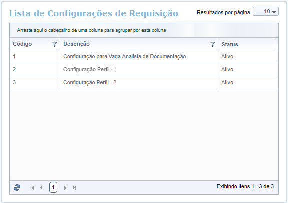 Ao abrir essa funcionalidade é apresentada uma relação das configurações já cadastradas: