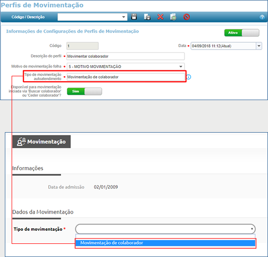 Acesse a funcionalidade Movimentação para determinar por quem a solicitação pode ser realizada e os tipos de movimentações (perfis) que serão exibidos ao usuário.