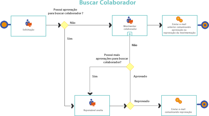 O processo Buscar colaborador é utilizado para autorizar o início de um processo de movimentação de um colaborador de outra gestão o qual o solicitante não possui visibilidade de suas informações através do processo Movimentar colaborador.